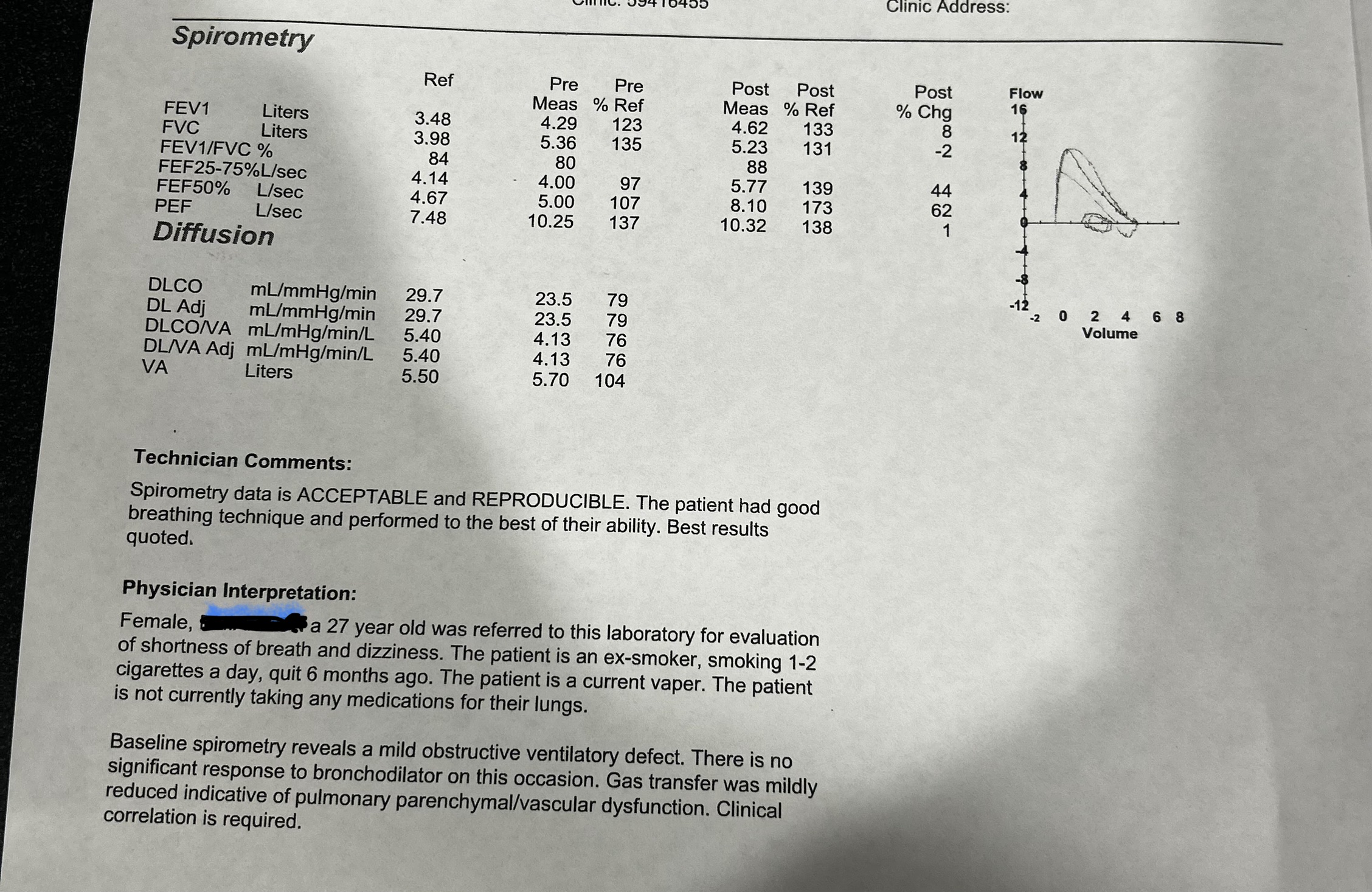 I have also attached a photo of the spiro results as I don't really understand them. The GP said everything was pretty normal aside from the FEV1/FVC%.