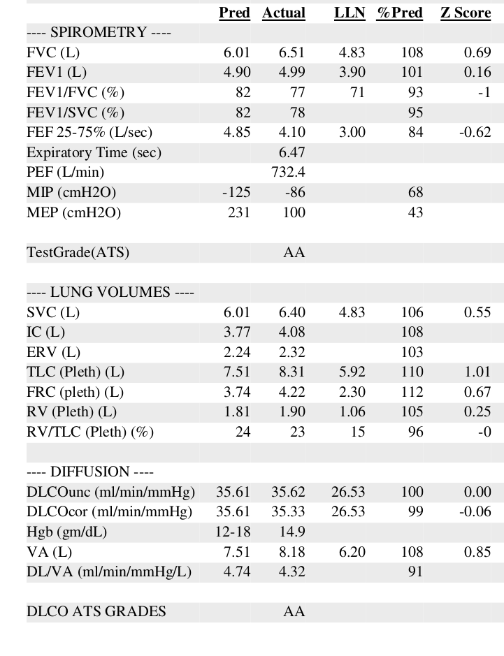 So I saw a pulmonoligst to get a 2nd opinion, and he ordered a chest CT and a PFT (attached). He concludes they are both normal, the COPD diagnosis was very premature, and that I should work on my health anxiety.