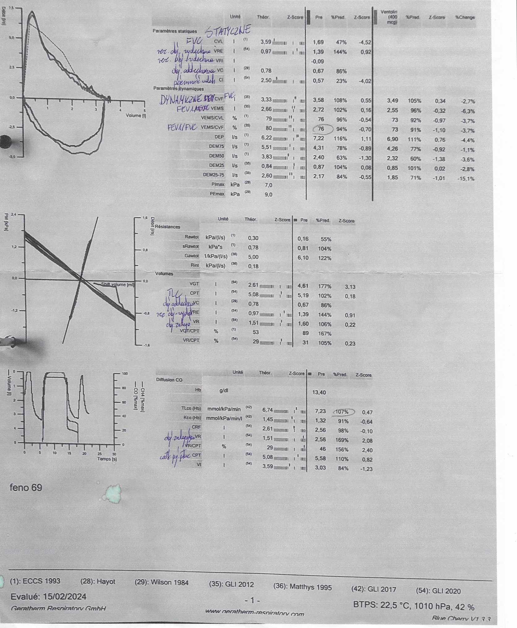 At the beginning of this year I found out there was mould in our house. My husband had clear pulmonary problems, so I also decided to test. I had an Xray and CT scan in March, both clear. In mid February I also had a spirometry (black and white, it was done in French so I added notes in English). The pulmonologist said it was OK, and attribted the shortness of breath and the chest tightness I started to have in March to anxiety.