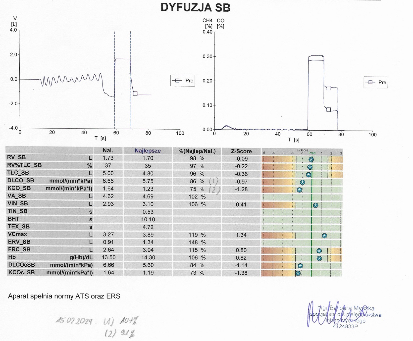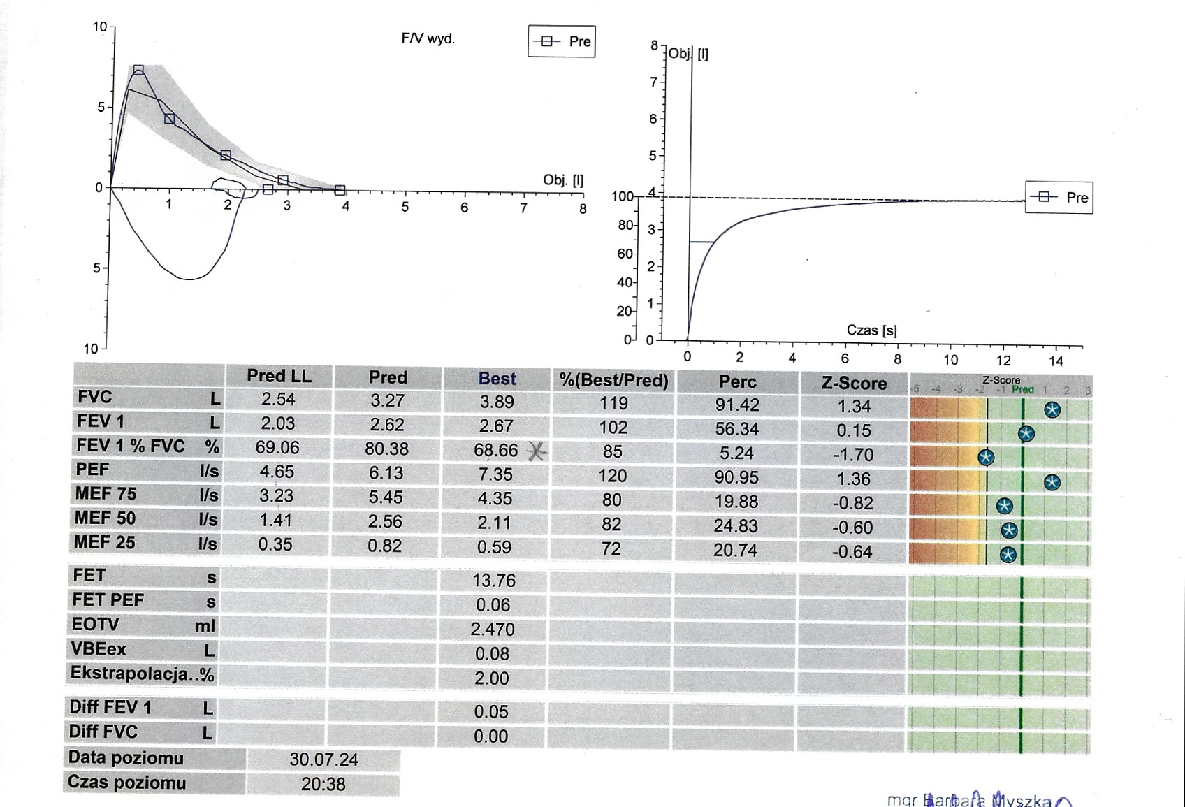 However, in July I decided to get a second opinion. Another spirometry (the color one) was done, and I see the diffusion is much lower now (DLCO/KCO), and the PFV1/FVC ratio is below 0,7.