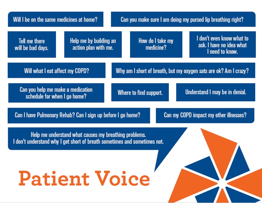 In the time since receiving these insights, I have shared this image with many health care professionals, and do you know what their responses have been? They were so blown away by these answers! Many of them said they had sometimes forgotten to consider how overwhelmed people can be, how you might not understand what the diagnosis means, or even that you might need instruction on using your inhalers correctly. If this tells me anything, it is that more communication needs to happen between patients and their health care teams. Tools like the My COPD Action Plan or the Pocket Consultant Guide (PCG) app can help improve that communication. If you want to learn more about those tools click here: My COPD Action Plan or PCG APP