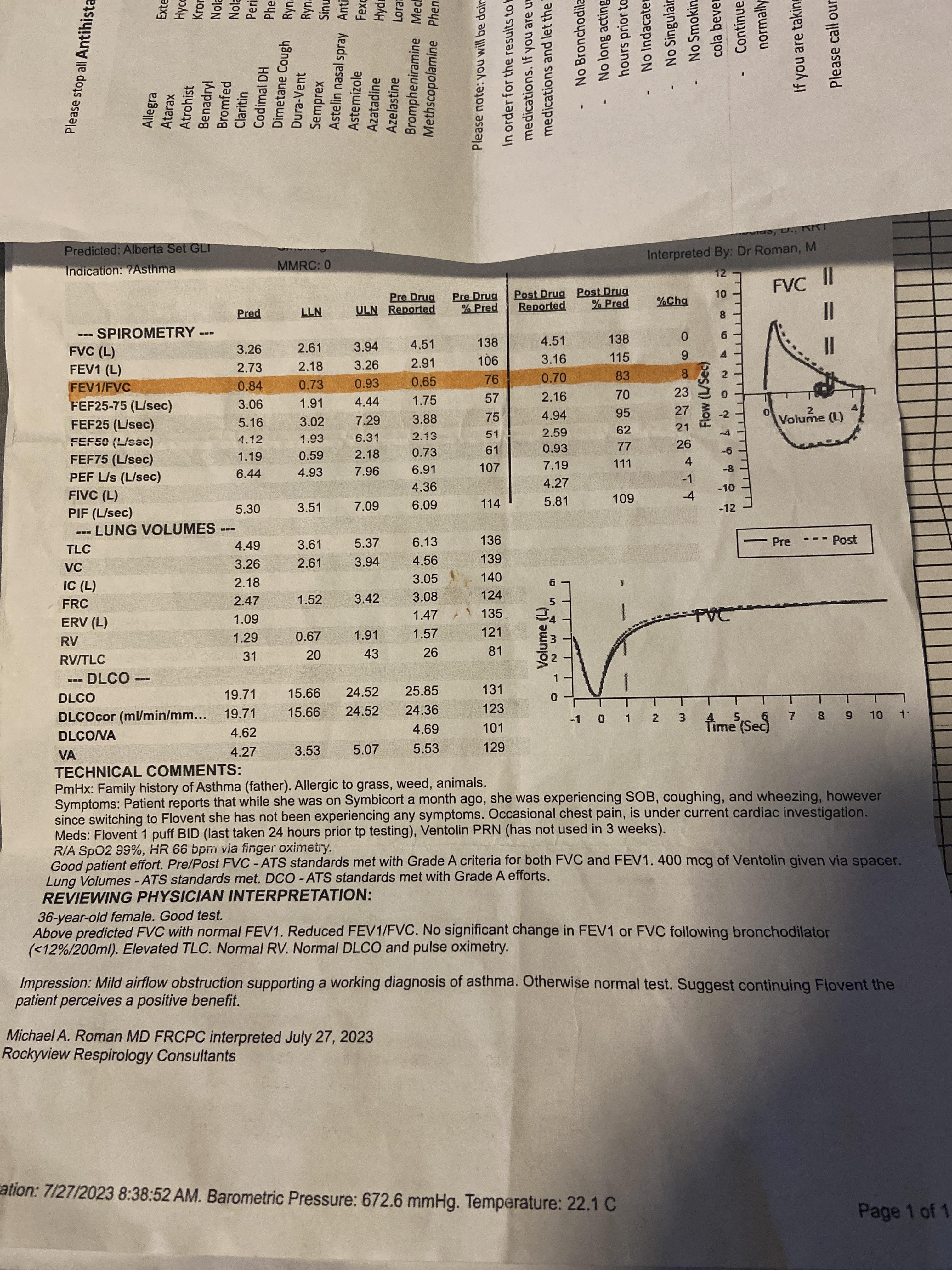 Only 8% change with abuteral which does not technically qualify me for asthma either