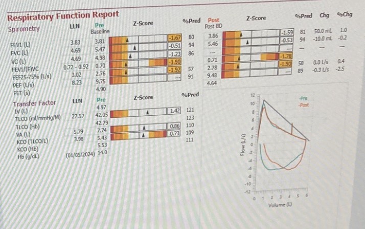 I'm 28M and have been dealing with some non-reversible obstruction for about 10 months now. My FEV1/FVC is at 70% without reversibility - most recent spirometry result is attached for reference.