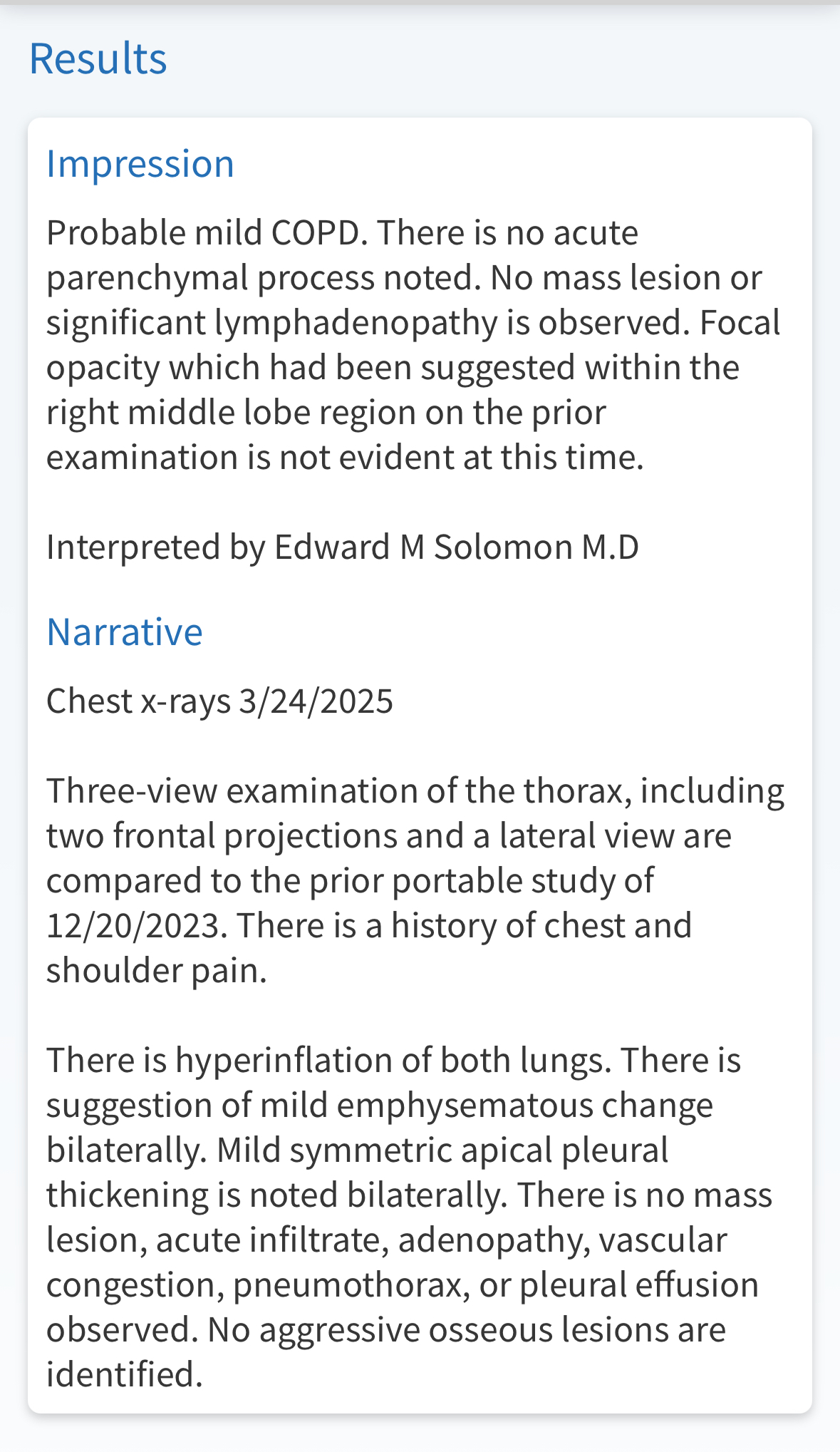 I went to the ER for right shoulder pain. They did some Xrays gave me some pain medication and sent me home. No one went over these reswith me at the hospital, I just happened to check my chart. I am very scared, how bad is this? Am I in big trouble?
