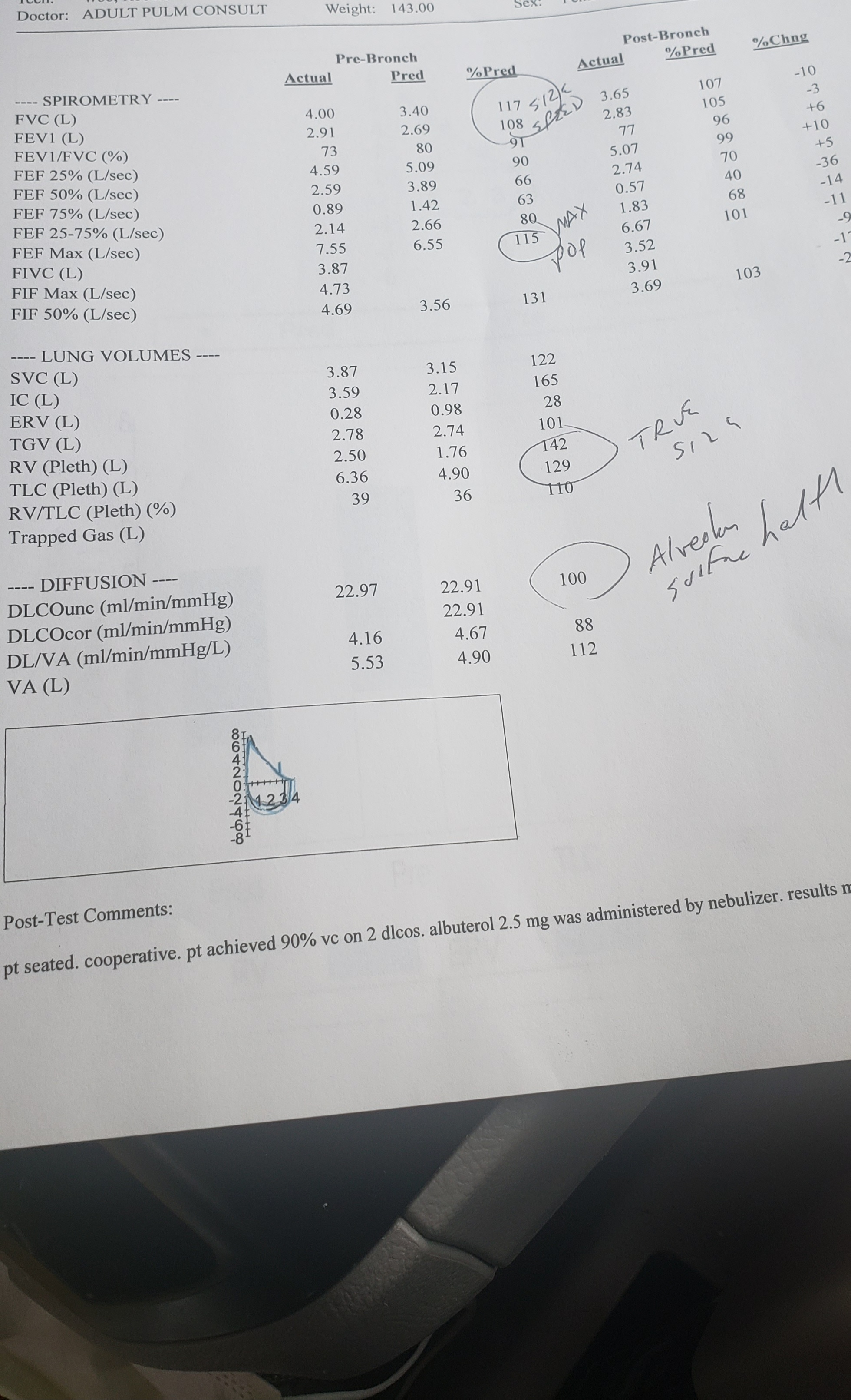 PFT results.