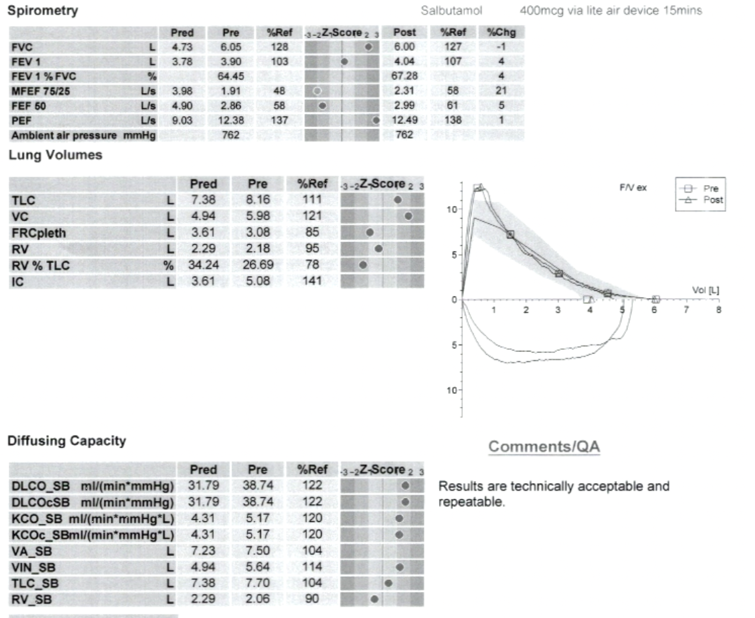 Hoping Dave might have a scan over these, troubled by constant inability to get a deep breath, throat clearing with a slight morning cough. Tolerance for excercise is good but tidal breathing is constantly off with a sense of breathlessness at rest that's mostly always there.