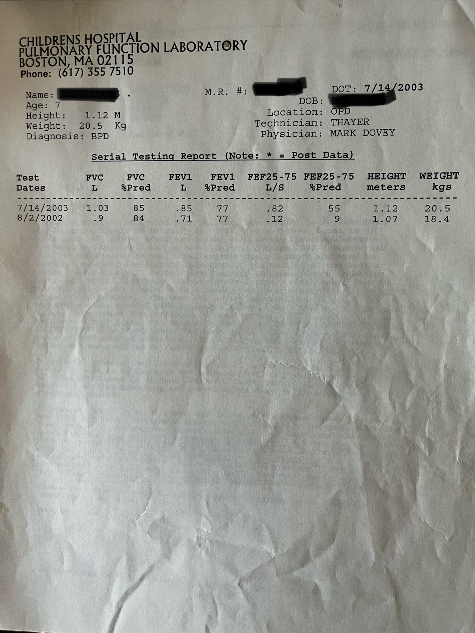 I’m a 29 yo male and have a long medical history. I was born premature and had Bronchopulmonary Dysplasia (BPD). As a result, all my life exercise had to be limited due to dyspnea and it was known that my lungs were impaired. This in turn adopted me to be more sedentary than I should be, including my job which is in the computer science field. My lungs did improve during my childhood but then appeared to drop to an FEV1 of 55 liters during my early teens without explanation. However, results showed a bronchodilator response and I was diagnosed with asthma. A few years ago, I had flown back to Florida to help my ailing mother with her Lupus. After I came back, I developed a slight cough but didn’t think much of it at the time. I had been away longer than I intended (a full year) and my carpeted studio was filthy. There had also been a fruit fly infestation while I was away that my apartment building took care of for me. I cleaned as best I could and the cough seemed to clear up. If it came back I’d just clean or assume it was the seasons here in the Northeast. It wasn’t really a hacking cough, more of a throat clearing one.